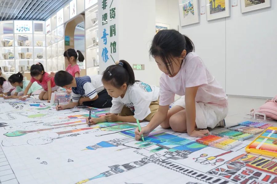 50位小画家集体创作了“童眼看浦东童心画美好”书画百米长卷