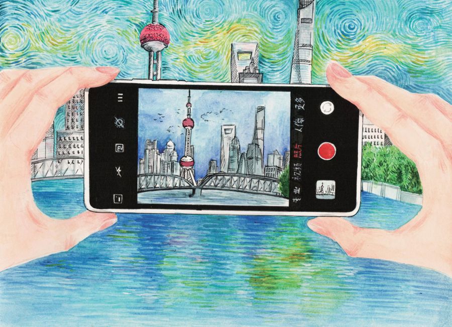 中学组获奖代表、来自香山中学的李卓然,其获奖作品名为《街角,光与色的私语》。他分享道:“从小,画笔成为我认识和表达自我的最好方式。这份热爱让我走进了以美育为特色的香山中学。未来,我希望能继续用画笔描绘对浦东乃至整个世界的奇妙想象,去发现美、创造美!”